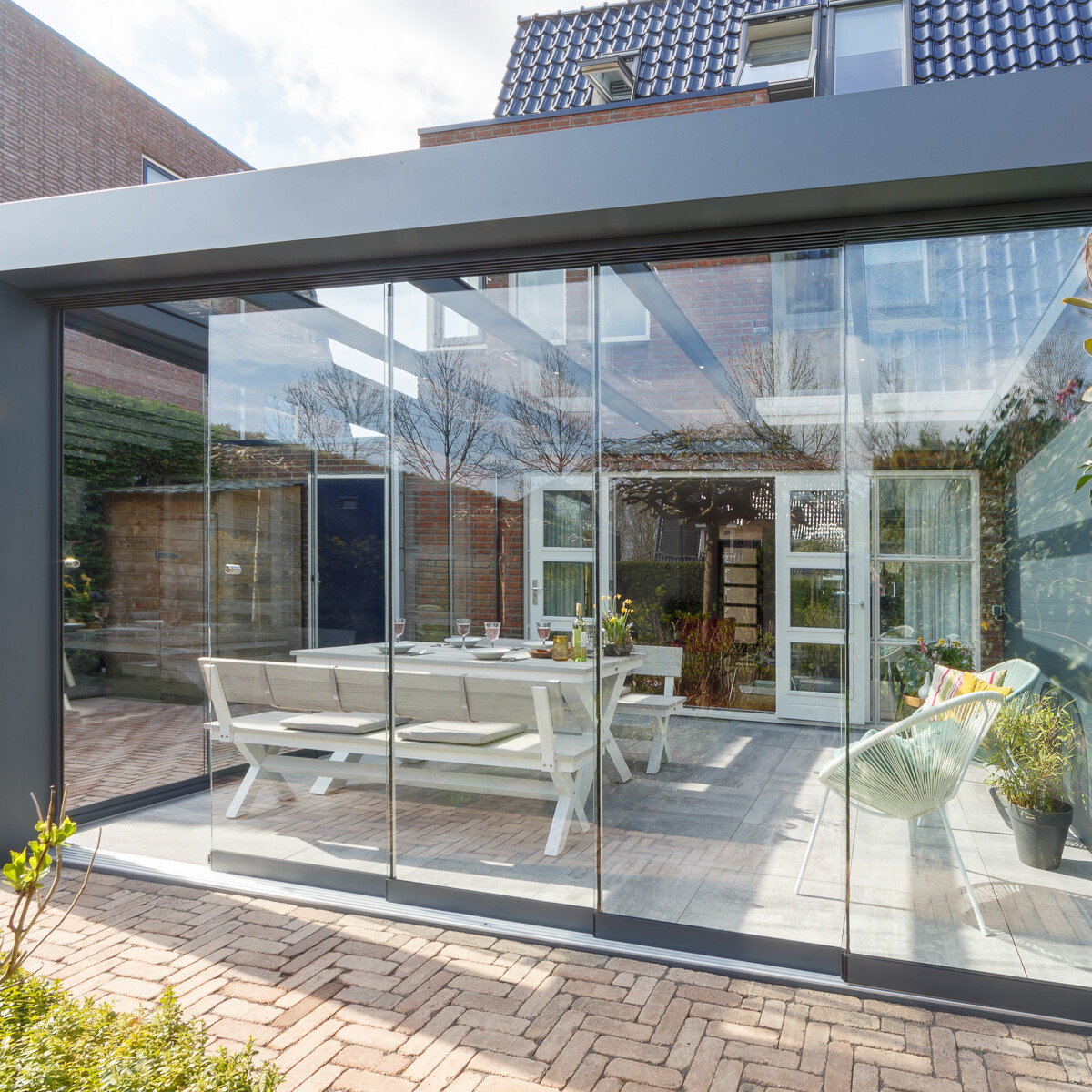 Die Terrasse ist für viele Menschen das Wohnzimmer im Garten. Regen kann der Entspannung an der frischen Luft jedoch schnell ein Ende bereiten. Eine feste Überdachung ist hier die beste Lösung für optimalen Schutz. Speziell ein Glasdach für die Terrasse überzeugt, denn es nimmt der Terrasse nicht den ersehnten Sonnenschein. Das Frühstück muss bei Regen nicht eilig nach innen verlegt werden, das Grillfest kann in jedem Fall stattfinden, die Freunde können lange im Voraus eingeladen werden – egal, ob es regnet oder die Sonne scheint. Unter einer eleganten Überdachung bleibt Ihr Mobiliar vor Verwitterung geschützt.