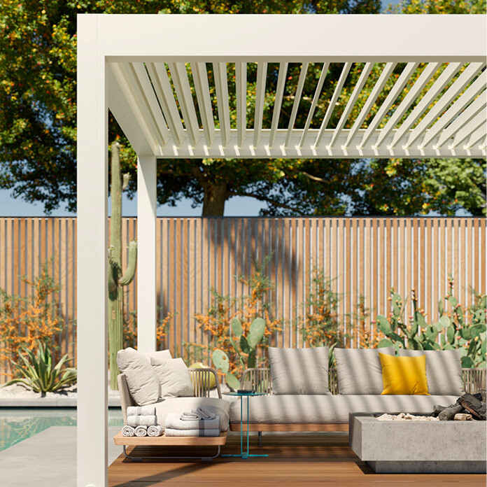 Mit dem clima Q.bus XL lässt sich ganz besonderer zusätzlicher Wohnraum im Freien schaffen, der sich dank seiner Flexibilität nahezu jeder Wettersituation anpasst. Das Lamellendach schützt perfekt vor Sonne, Regen und mit entsprechenden Erweiterungen auch gegen Wind. Dabei lässt sich das Tageslicht auf der Terrasse oder unter dem Freisitz optimal lenken – ungetrübte Stunden im Freien sind also garantiert.