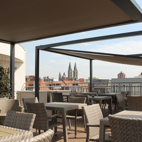 Besonders stabile Beschattungssysteme mit extrem großen Baumaßen sind vor allem in der Gastronomie gefragt. Aber auch im privaten Terrassen- oder Gartenbereich gewinnen Pergola-Markisen immer mehr Anhänger.